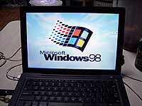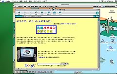 ということで、全画面表示で立ち上げたらMacbook 98seの完成(笑)。しかし全画面表示だとポインタがVPC上に移動せず(泣)。ウィンドウ表示だと問題ないんだけどな〜。まぁ、ここまでやったし、先週は更新してないし、やっぱり更新するしかない!とがんばりましたが、こんな時間になってしまいました。明日は仕事にならんな(薄笑)。
