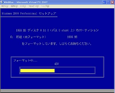 格闘すること1時間半、もう疲れたので、とりあえずCDブートできる2000のディスクでフォーマットをすることに。予想以上にあっさりとフォーマットできてるんですが(汗)。