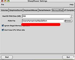 MacOS Romの場所を指定してあげたら、あとはMac OS CDを入れて「Start」ボタンを押すだけです。