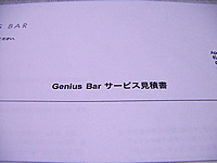 ということで、土曜出勤だった会社の帰りに早速AppleStore札幌へ持っていきました。するとGenius Barで応対してくれるということで、カウンター席を勧められました。は、初体験(笑)♪ とりあえず症状を伝え、初期不良対応して頂けるかどうかを話したところ、快く初期不良として部品交換してくれるとのこと。電話と違って対応いいじゃん(笑)。しかし今はこのページの更新と友人のサイトを管理している状態で、あまり長期間預けておけないということを伝えると、部品の在庫を調べてくれ、交換には約1日あればいいとのことで、月曜の昼に持っていって火曜日にピックアップすることにしました。融通も利いて、更に良い感じ♪