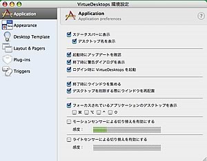 最後はバーチャルデスクトップ環境を提供してくれるVirtueDesktopです。以前ibookに入れていたVirtueプロジェクトが、こちらに移管したみたいです。デスクトップを切り替えて使えるのって便利ですよね!奥さんには「めんどくさい」と一括されましたが(笑)。