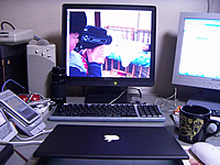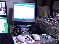 左手にはZaurus SL-A300とClie NR70が仲良く並んでいます。う〜む、我ながらなんと趣味的な机(笑)。