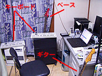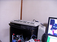 ということで机はPC周りでいっぱいなので、キーボードとMIDI関連は横のカラーボックスに退避。