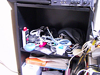 無線ブリッジとして使っているAirMacは上の梁にくっつけてあります。カンペキなんじゃないでしょうか?いや、カンペキでしょう(笑)。と一人悦に入っていたんですが、私の片付けというのは今ある場所をきれいにするために、とりあえず邪魔なものは横に置いておくというパターンなんです。つまり、今までごちゃごちゃしていたものは、