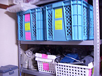 コンテナに製品別に仕分けしちゃったんです。我が家はハー○オフかって(笑)。