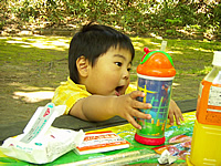 逆にインドアまったり男の宏樹は、昼食をとったテーブルにくっついてのんびりジュースを飲んでいます。