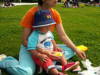 着くなり腹ごしらえです(笑)。宏樹はママの膝の上でまったりとしています。