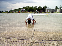 それでも食べ終わっちゃえば、いつもの仲良し兄弟に戻ります。子供プール(というか水たまり?)へ一緒にお出かけです。
