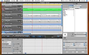 ガレージバンドで全ての音を収容して、いろいろといじりました。いやー、便利な世の中になったもんですね〜(笑)。しかもMacbookがあまりに快調にガレバンを動かしてくれるので、ついつい余計なループブラウザをどんどん突っ込んで、こんな風にしちゃいました♪ さすがにファンは前回で回っていますが、メモリは気にするほど足りないってわけでもなさそうな挙動です。ま、ibookG3 800や青白に比べれば何やっても快適なんですけどね(笑)。