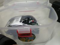 タイム認定証をもらい、まんざらでもない様子の樹理です。帰りがけにも「このロボット買って帰ろうよ」と言っていましたが、残念。プログラム用のソフトはウィンドウズ用だし、データを飛ばす赤外線デバイスもRS232c接続だったんだよ。樹理のDTでは使えないね。Macで使えるロボがあればいいのにね。