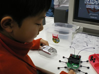 ・・・しかし小さい・・・。もっとこう「ガキーン!」としたロボを想像していた私はちょっと肩すかしです。でも樹理は自分で組み立て(もちろん半田づけなんかはありませんが)しているロボにもう夢中です。完成する前から「これは持って帰れるの?」などと聞いてきます。