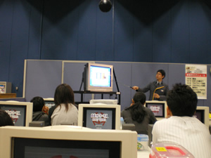 もちろん親子科学「教室」なんで、座学もあります。この虫型ロボットは予めPCでプログラムを組んで、それを虫型ロボのメモリに送信して記憶させるんです。で、そのプログラムの方法を子供たちにもわかるように教えてくれたんです。が、なんせ樹理はまだ1年生、難しい漢字は読めません。ということで、仕方なく、本当に仕方なく父がプログラムを組んじゃいました♪