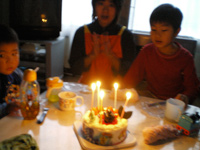 まずは07年12月23日、私の誕生日でした。なぜかクリスマスケーキの「キャラデコゲキレンジャー」を「パパの誕生日ケーキ」と言い張る奥さんの勢いに負け、子供たちもこのケーキを私のものだと認識したようです。