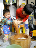 樹理と宏樹にも搗いてもらって、年末年始のお餅を搗き上げました。これが毎年奥さんに好評で(笑)。