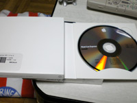 中身もいたってシンプルで、インストールDVD1枚だけです。この中にFinal Cut ExpressとLive Typeが入っています。あ、Final Cut Expressが何かわからない方がいらっしゃるかもしれませんので、簡単にご説明しておきましょう。Final Cut Expressは「ふぁいなるかっとえくすぷれす」と読みます。いわゆるビデオの編集ソフトです。プロ用にはFinal Cut Studio(ふぁいなるかっとすとぅでぃお)というのがあって10万円以上しますが、Expressは廉価版なので、フルインストール版を購入しても23,000円(だったかな?)です。ビデオカメラから撮影データを読み込んで、そこから必要な動画を切って貼って、1本の動画を作成できます。もちろん音声も切り貼りできて、BGMなんかも簡単に付けられます。そこに付属するのがLive Type(らいぶたいぷ)、これはテキストムービーを作成するソフトです。テキストムービーっていうのは、簡単に言うと「文字がうにょ〜んと飛び出してきたり、キラキラと光ったりする」アニメーションですね。それを作って、Final Cut Expressに読み込めちゃうんです。一個前のバージョンでは、更にSound Trackというのが付属していたみたいですが、まぁ4で省かれたということは必要ないんでしょう。・・・きっとそうなんでしょう(決して悔しいわけではありません)。