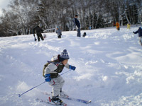 明けて今日、最近は練習であまり一緒にいる時間がなかったので、樹理を連れて月寒公園でスキーの練習です。ちなみに宏樹は風邪気味なので、お留守番です。