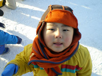もちろん宏樹も完全防備です。しかし周りを見渡すと、ほとんどスキーウェア着用なんですね。私はかなりラフな格好で、下はジーンズだけだったんですが、寒さにかなりやられました(笑)。