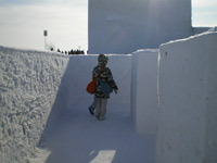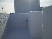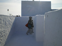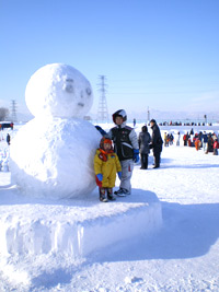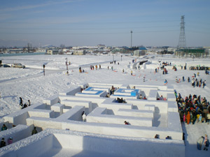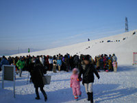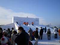 更に会場内は早朝からかなりの混雑具合です。さとらんど会場は滑り台やなんやらのアトラクション系の雪像がほとんどなんですが、会場に入るなりすでに2時間待ちとかのアトラクションがあって(汗)。さすがにそれだけ並んで一滑りで終わるのもなんなので(氷点下で2時間も待ってられませんし)、比較的空いているアトラクションを選びました。