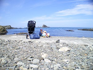 おたる水族館は外にある海獣プールに隣接して、海に出れるんです。昼飯はこんな感じでのんびりと食しました。