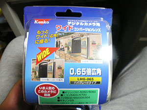こんなワイコンも購入しました。Kenko LHG-065です。0.65倍の(一応)デジイチ用ワイコンみたいです。定価17,000円のものですが、Kenkoアウトレットショップでこれも3,500円程度でした。