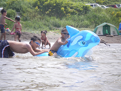 行ったところは古潭海水浴場です。本当はその手前の望来海水浴場へ行こうと思ったのですが、あまりの混みように駐車場に¥入ることさえままならず、望来を通り越して古潭まで行ったんです。そしたら海の家が1軒だけある小さな海岸で、しかも路駐天国(笑)。ということで、うみはあまりきれいではありませんでしたが、とにかく天気が良かったのでよしとしましょう。