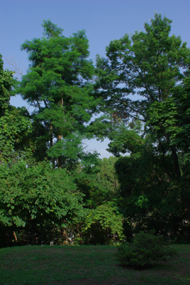 夏の強い日差しが木々に遮られて、心地よい風が吹いていました。