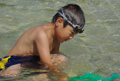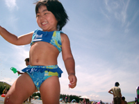 奥さんももちろん、夏の海を満喫した模様です(完全に宏樹の後ろに隠れていますが)。