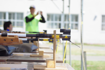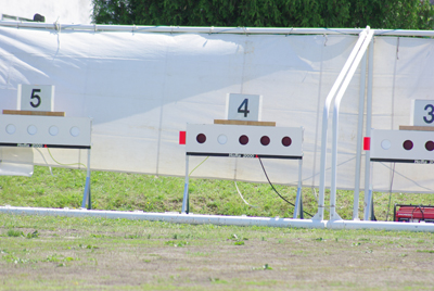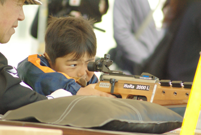 バイアスロン体験です。銃は電子式で、照準を合わせてずっと先にある的に向かって引き金を引きます。